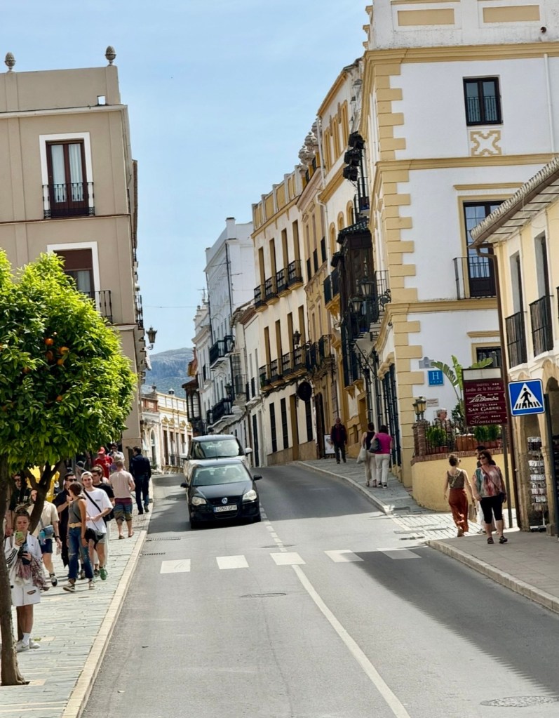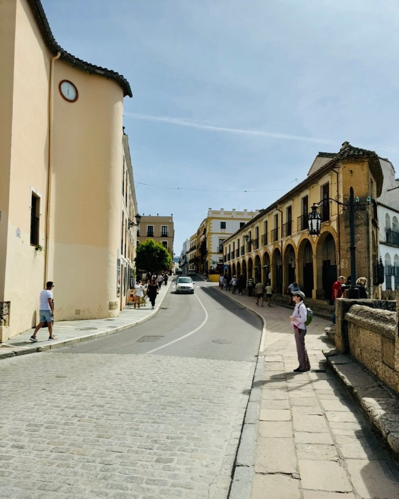 A byl to ideální čas – počasí bylo nádherné, ani jaro ani léto, ale městem už jsme projížděli se staženou střechou a protože Ronda ještě nebyla zaplavena turisty, užili jsme si město v klidu a miru. A také jsme skvěle zaparkovali nedaleko Plaza de Toros de Ronda, kde je slavná aréna a tam jsme začaly prohlídku města.